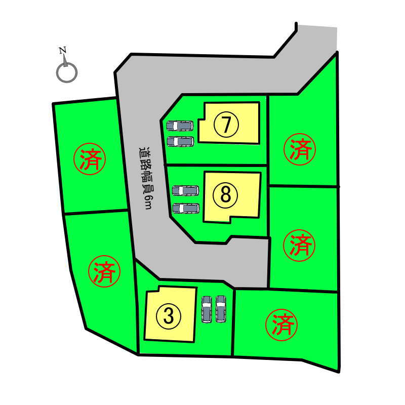 | 権利種類 | 所有権 | 接道 | 北7.4m・中央6m |