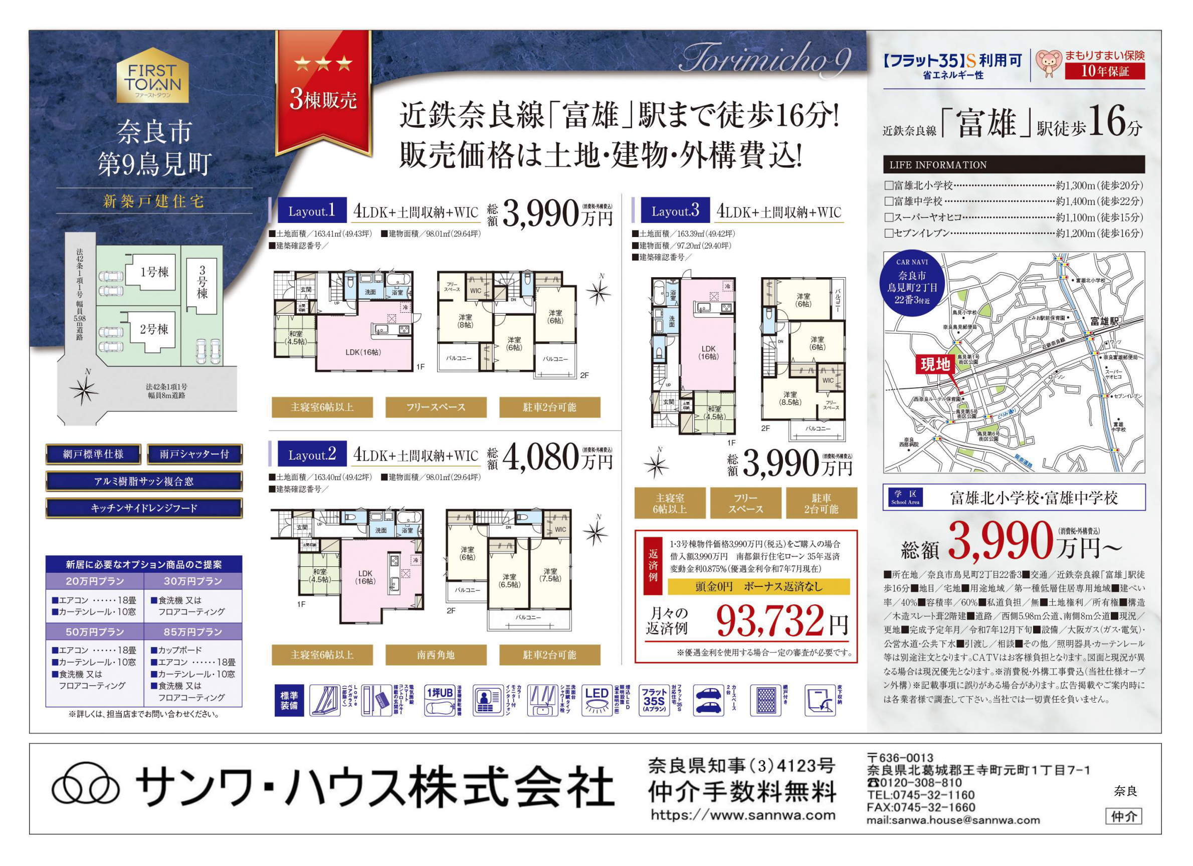 | 備考 | 消費税・外構込・仲介 | 中学校 | 富雄中学校 1.4km |