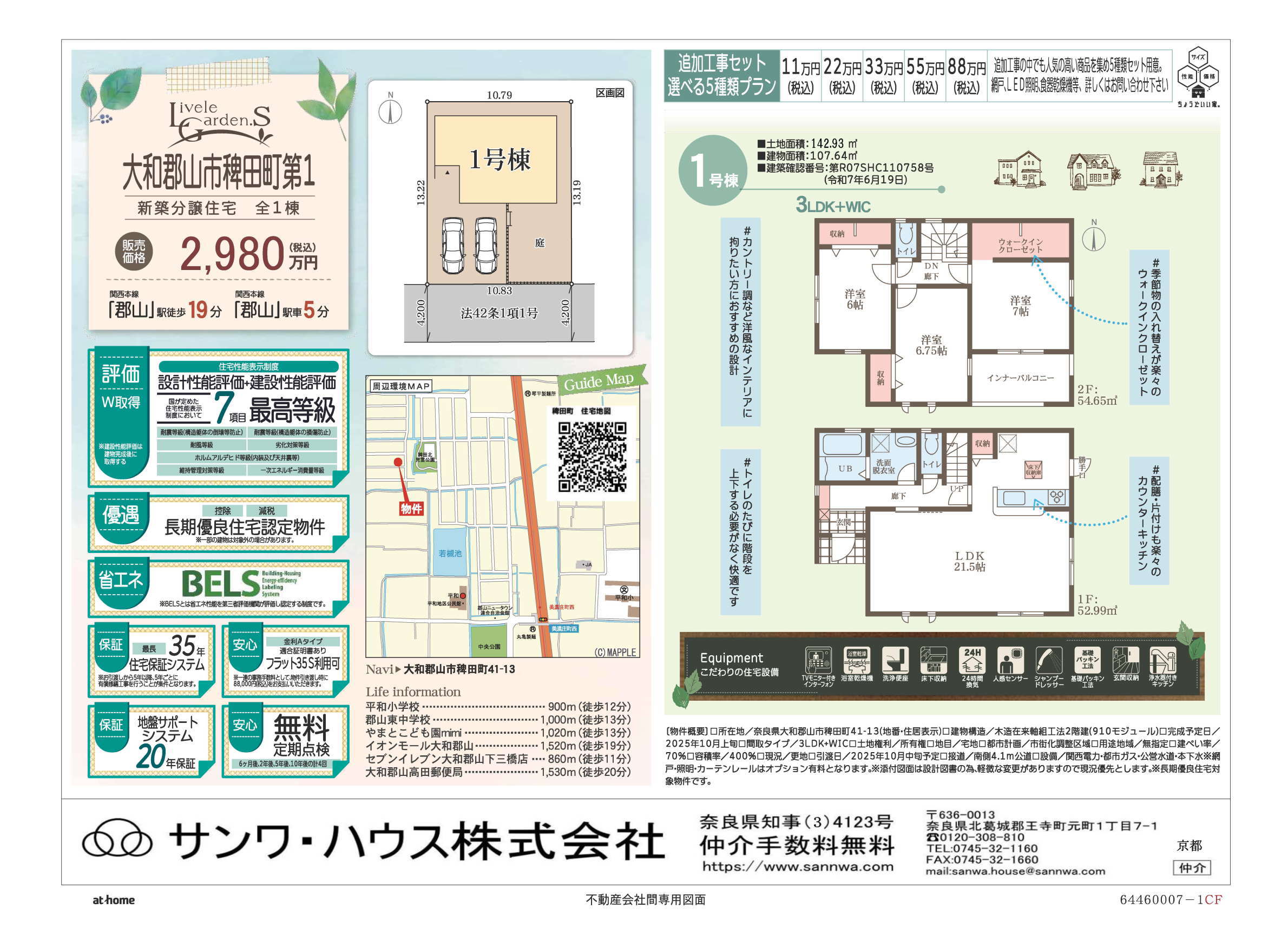 1 | 2,980万円 | 142.93㎡ | 107.64㎡ |