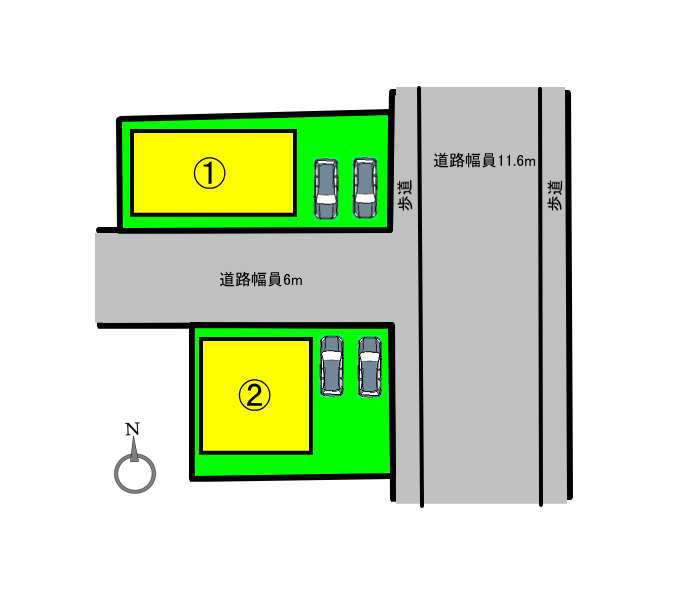 | 権利種類 | 所有権 | 接道 | 北6m・南6m |