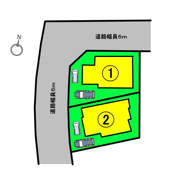 | 権利種類 | 所有権 | 接道 | 北6m・西6m |